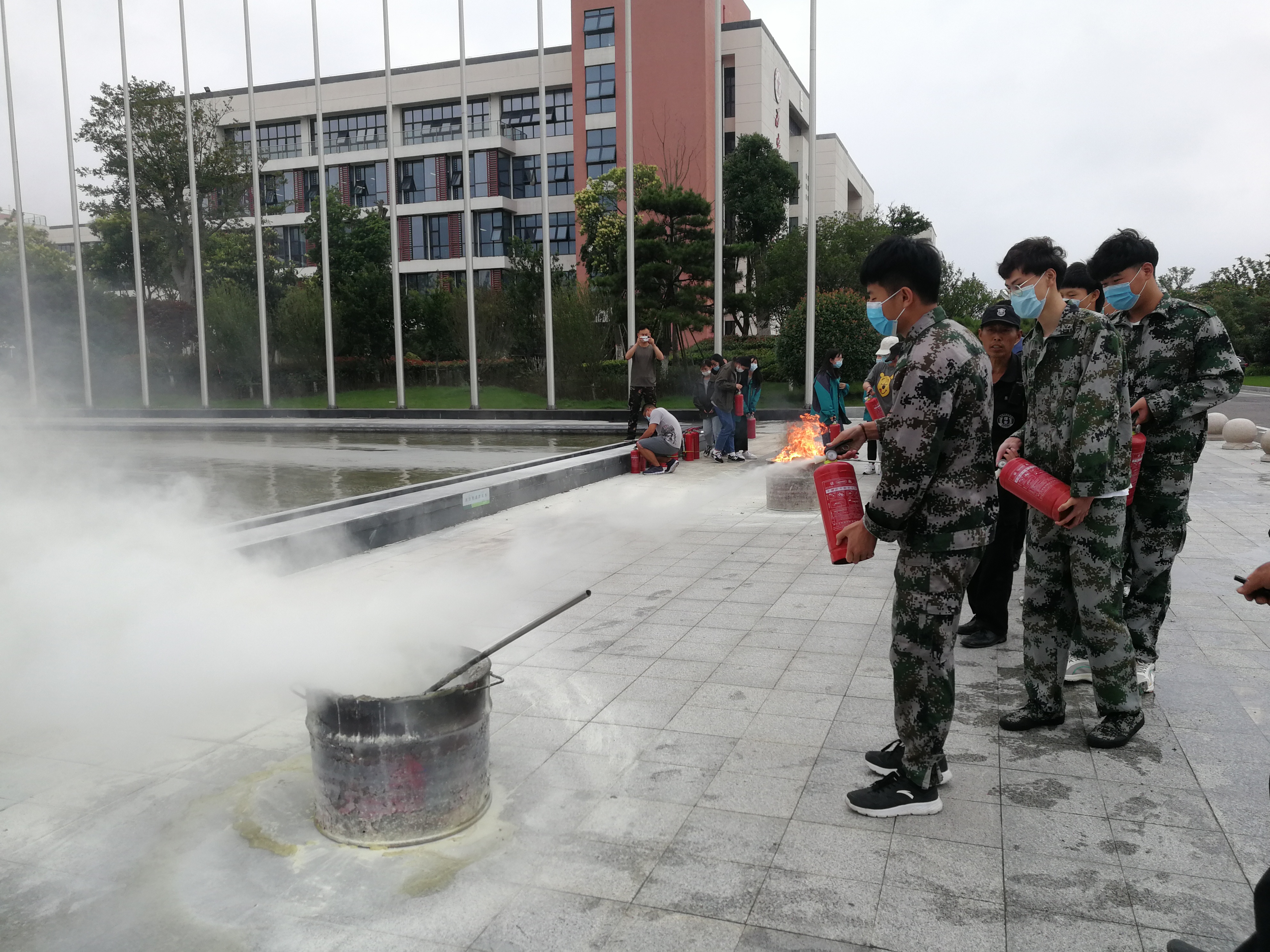 隨著警報響起,在校師生緊而有序地跑向疏散集結點。消防隊員迅速趕赴現(xiàn)場處置,第一時間將兩把水槍對準模擬火點進行快速滅火。演練結束后,示范區(qū)消防大隊指導員江鐵對人員疏散、初期火災撲救作了點評,并提出了改進措施。